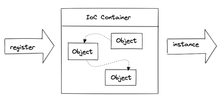 ์ด๋ ํ class๋ค์ ์ฌ์ฉํ ๊ฒ์ด๋ค๋ผ๊ณ registerํ๋ฉด ํ์์ ์ํด ์์กด๊ด๊ณ๋ฅผ ๋งบ์ด์ฃผ๊ณ ์๋ช ์ฃผ๊ธฐ๋ฅผ Managing ํ๋ฉฐ ๊ฐ์ฒด๋ค์ ์ธ์คํด์ค๋ฅผ ๋ง๋ค์ด์ค๋ค.