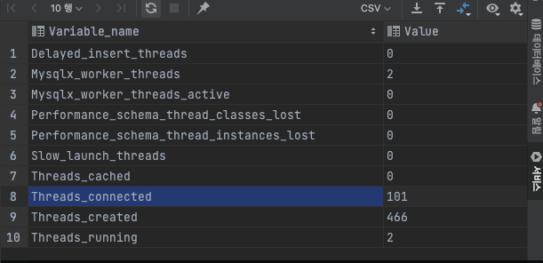 show status like "%Thread%" 쿼리를 통해 connection 개수 확인가능