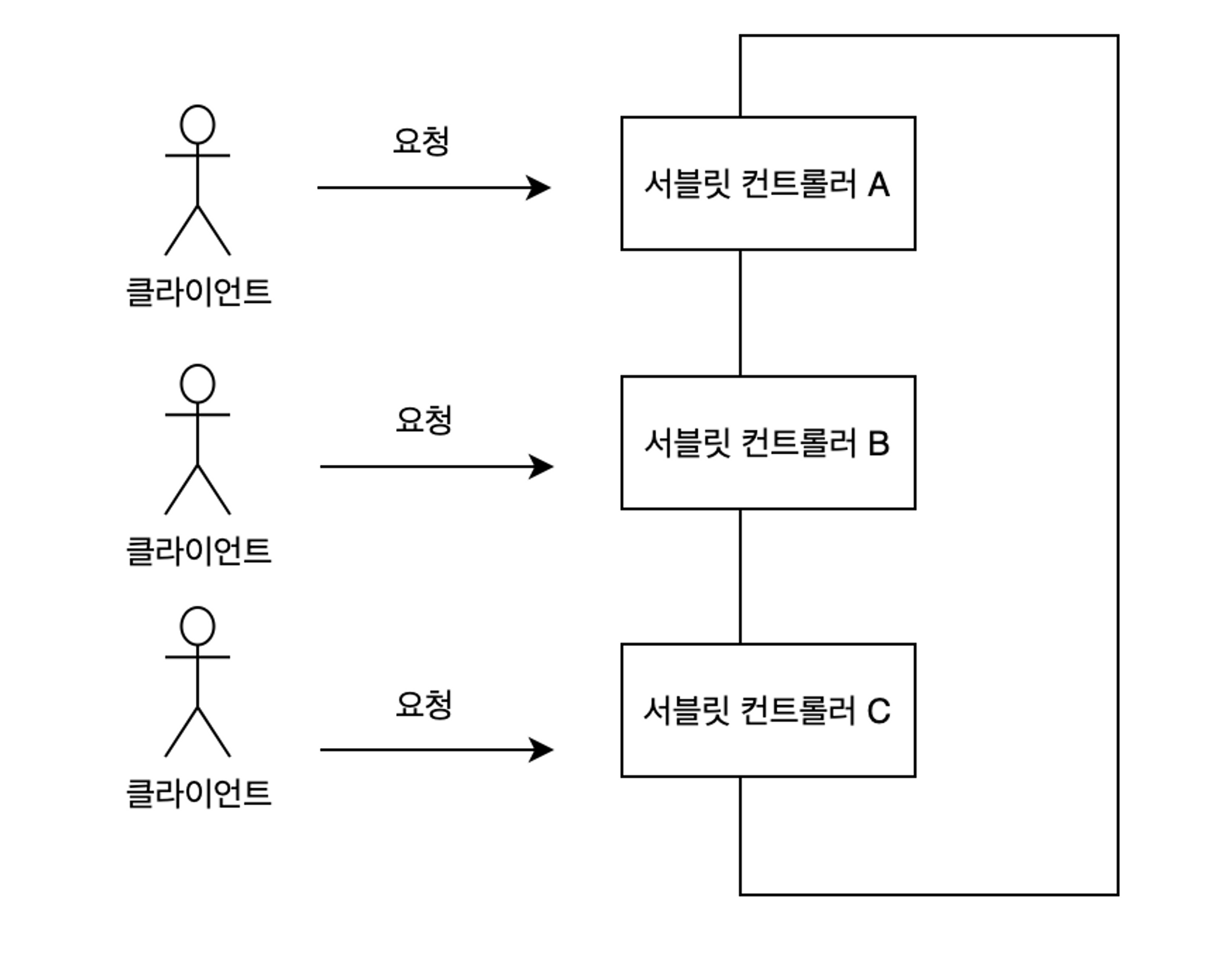 - WAS์์ ์๋ธ๋ฆฟ ์ปจํ ์ด๋๊ฐ ์๊ณ ์๋ธ๋ฆฟ์ ์๋ช ์ฃผ๊ธฐ๋ฅผ ๊ด๋ฆฌํ๋ค.