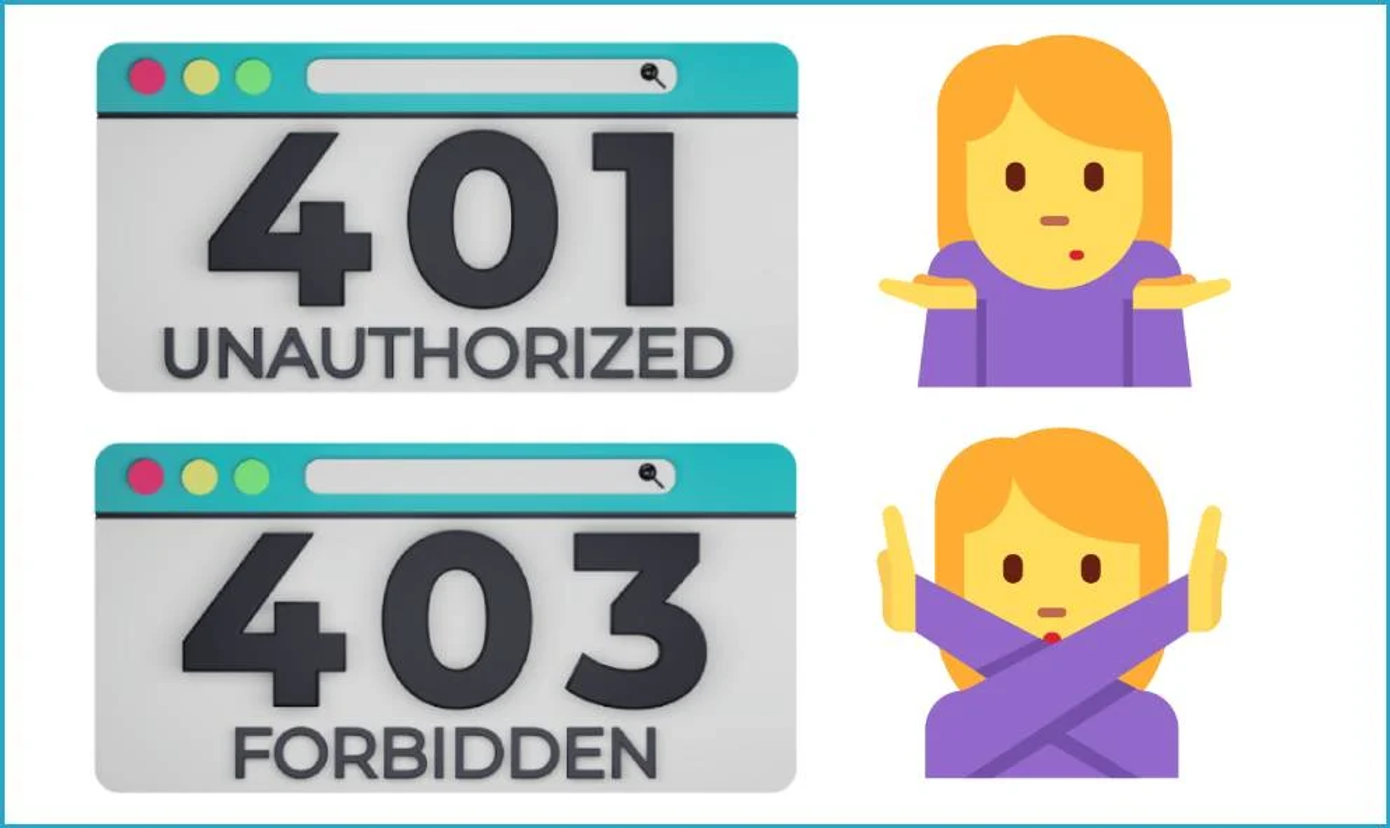 ๋ชจ๋๊ฐ ์์๋ค์ํผ ์ธ์ฆ์ ์คํจํ์ ๊ฒฝ์ฐ์๋ 401 ์๋ฌ์ฝ๋๋ฅผ, ์ธ๊ฐ์ ์คํจํ์ ๋๋ 403 ์๋ฌ์ฝ๋๋ฅผ ์ ๋ฌํด์ผ ํฉ๋๋ค.